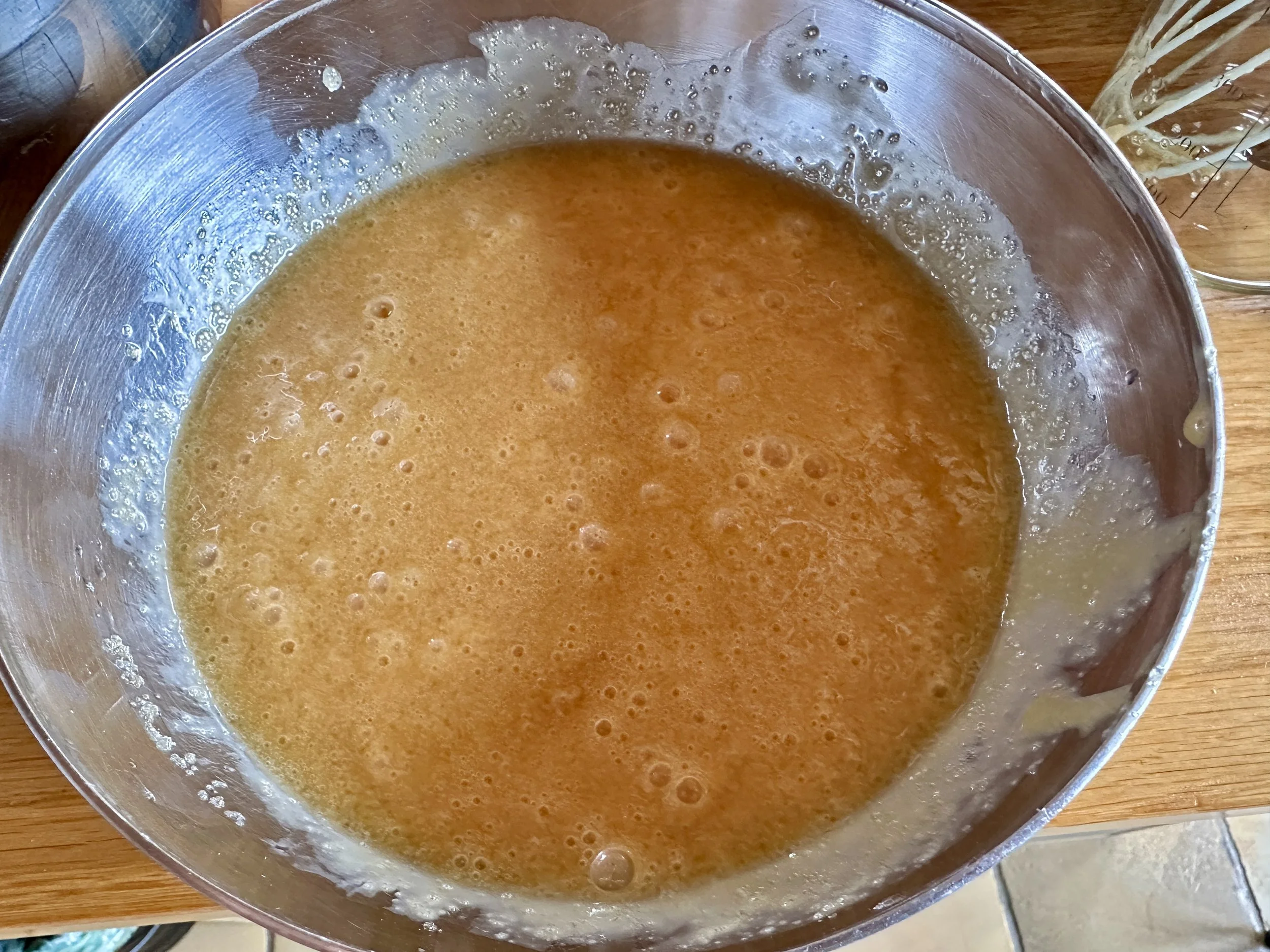 Add the eggs, one at a time, whisking after each one.
