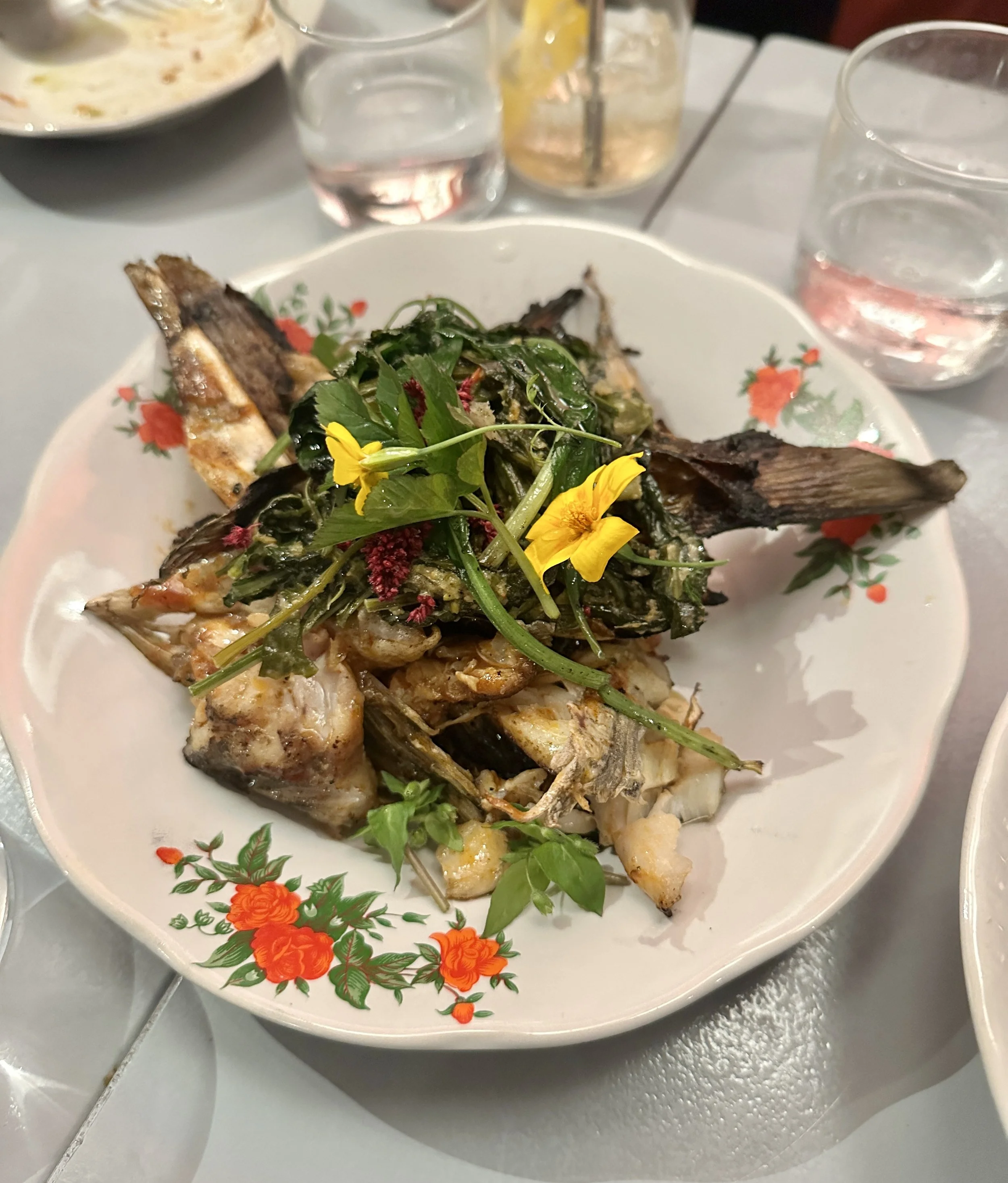 FISH OF THE DAY Grilled local fish served with ‘arsik’ butter, morning glory